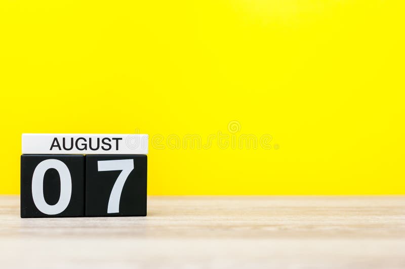 August 7th Image of August 7 Calendar on Yellow Background with Empty