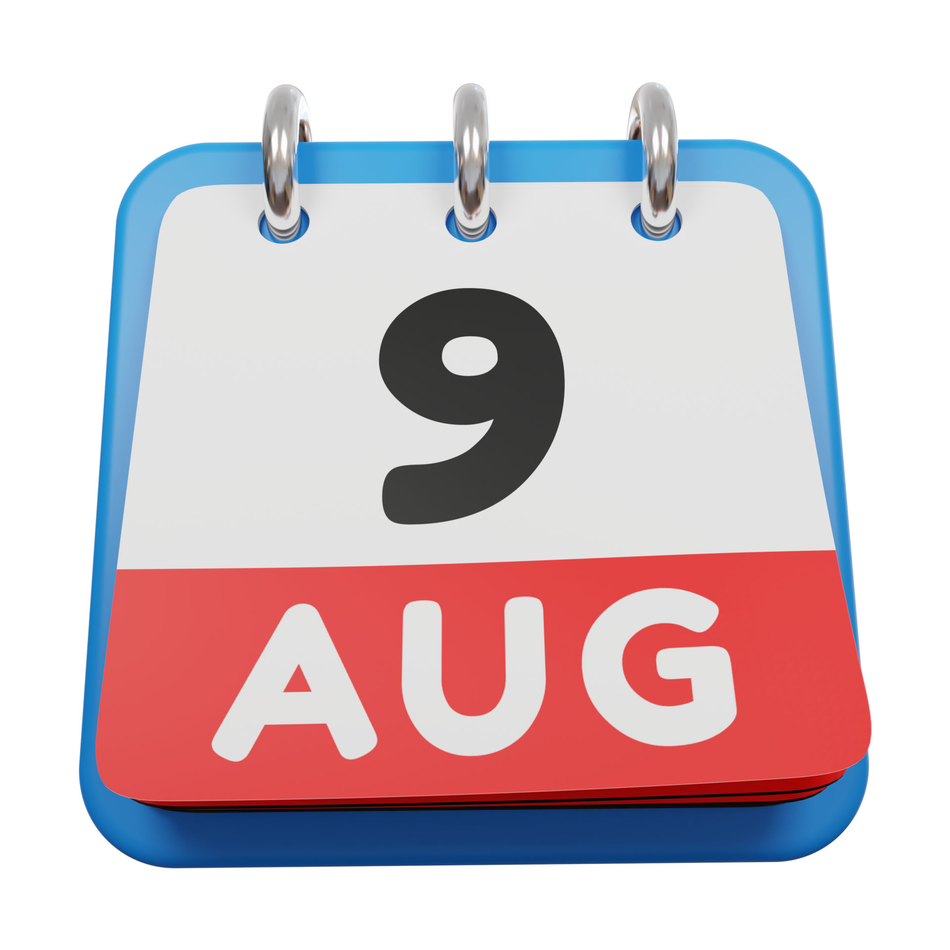 9th August calendar 3D icon 3D August 9 calendar Date Month icon