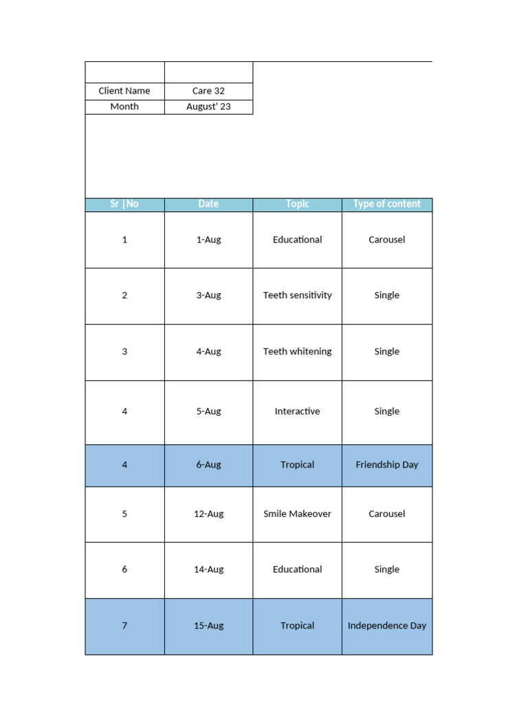 Care 32 August Content Calendar (V3) PDF Dentistry Dentist