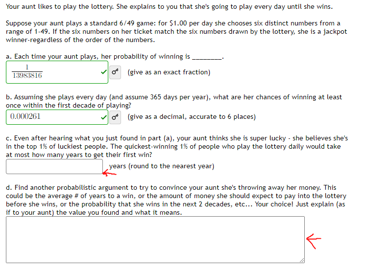Solved Your aunt likes to play the lottery She explains to Chegg com