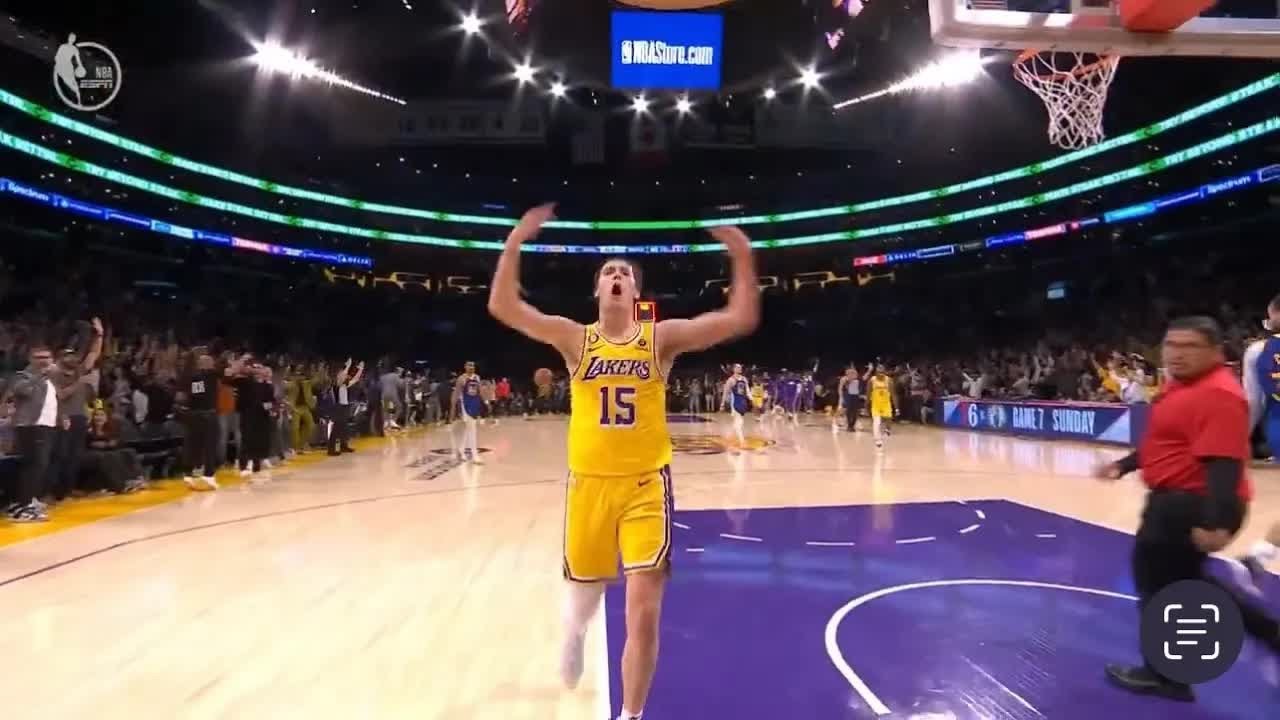 Watch Austin Reaves nails a half court buzzer beater to give the LA