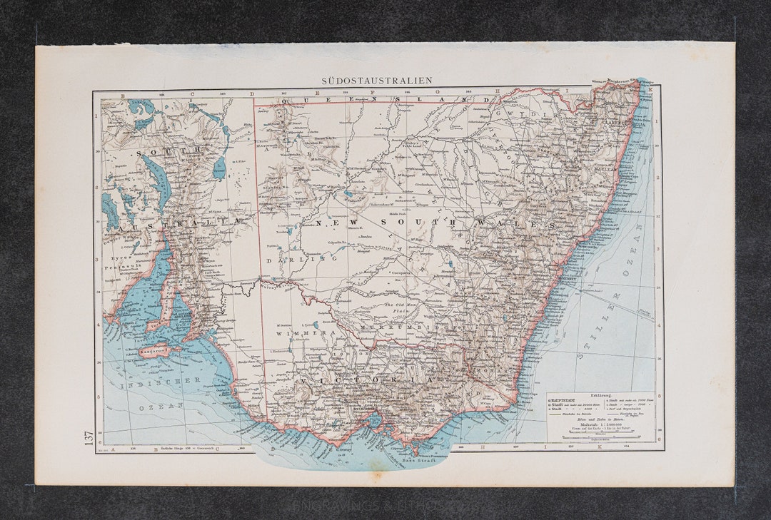 1896 South Australia Map Color Engraving (original German Atlas Print