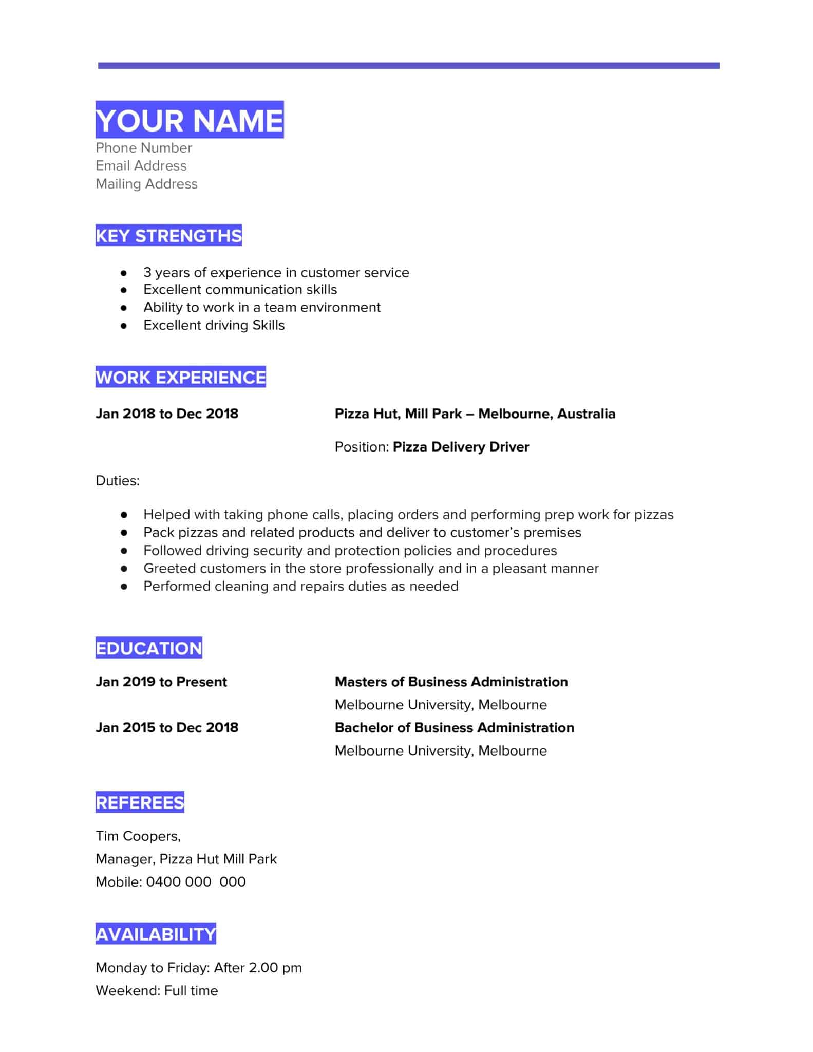 Resume Template Australian