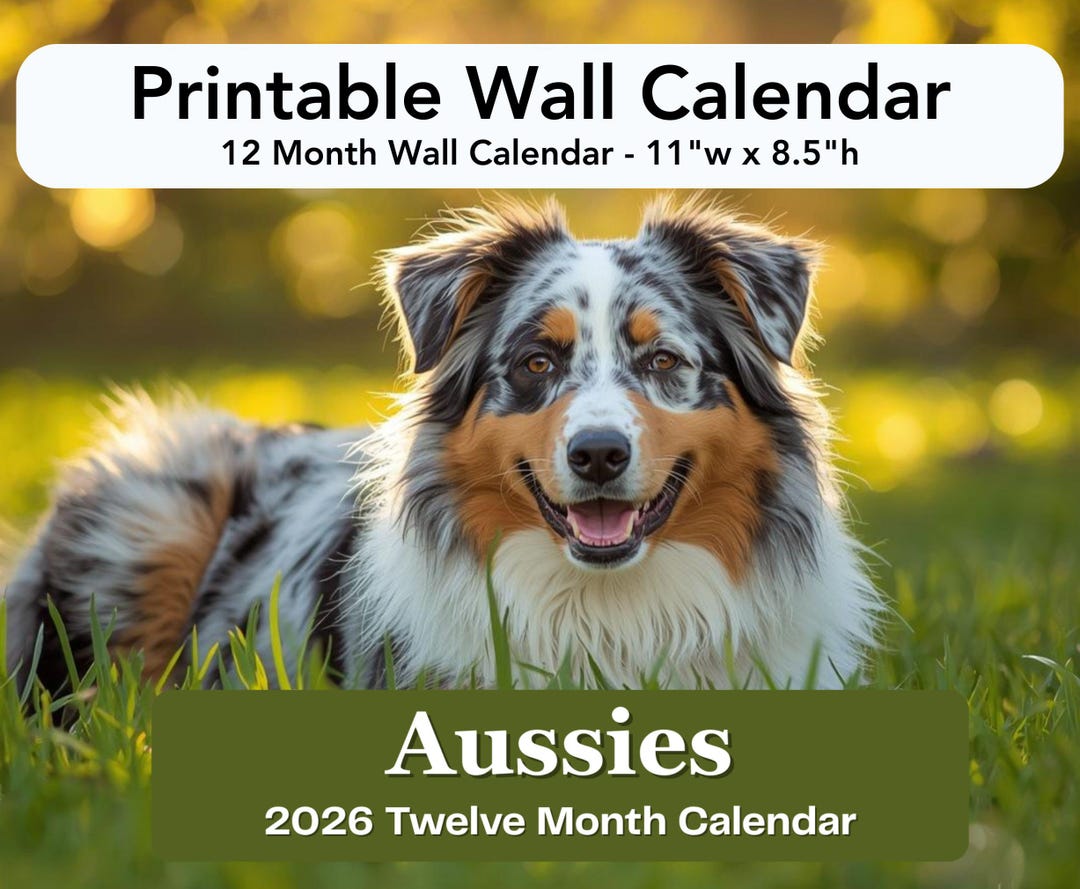 Australian Shepherd Calendar 2026 Printable 11x8 5 Wall or Desk