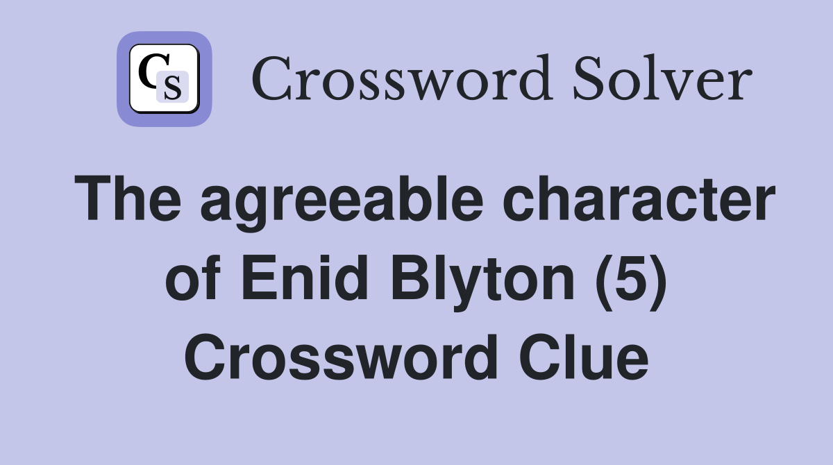 The agreeable character of Enid Blyton (5) Crossword Clue Answers