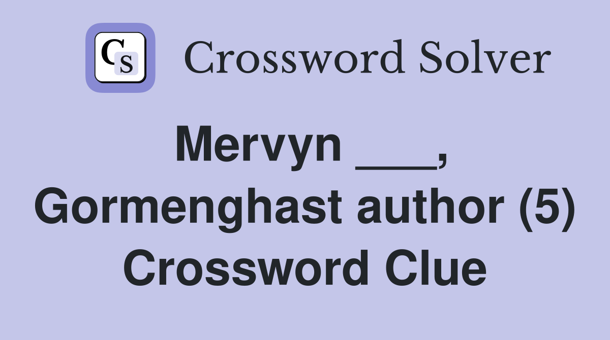 Mervyn Gormenghast author (5) Crossword Clue Answers Crossword