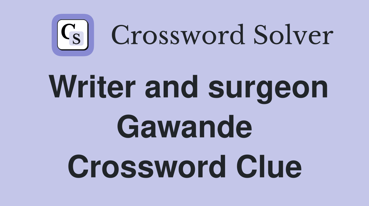 Writer and surgeon Gawande Crossword Clue Answers Crossword Solver