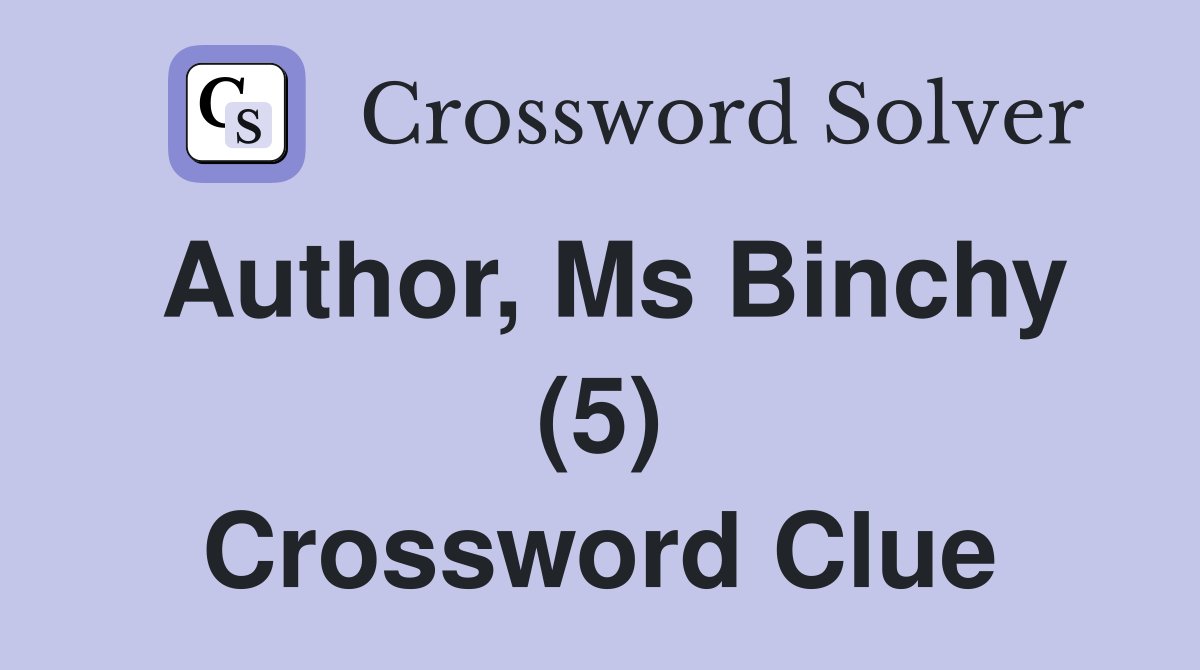 Author Ms Binchy (5) Crossword Clue Answers Crossword Solver