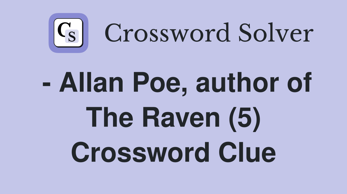 Allan Poe author of The Raven (5) Crossword Clue Answers