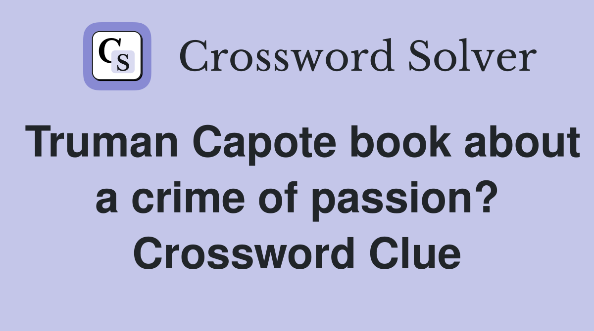 Truman Capote book about a crime of passion? Crossword Clue Answers