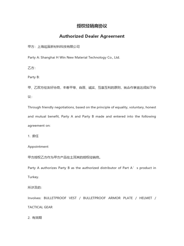 H WIN Authorized Dealer Agreement PDF Civil Law (Legal System