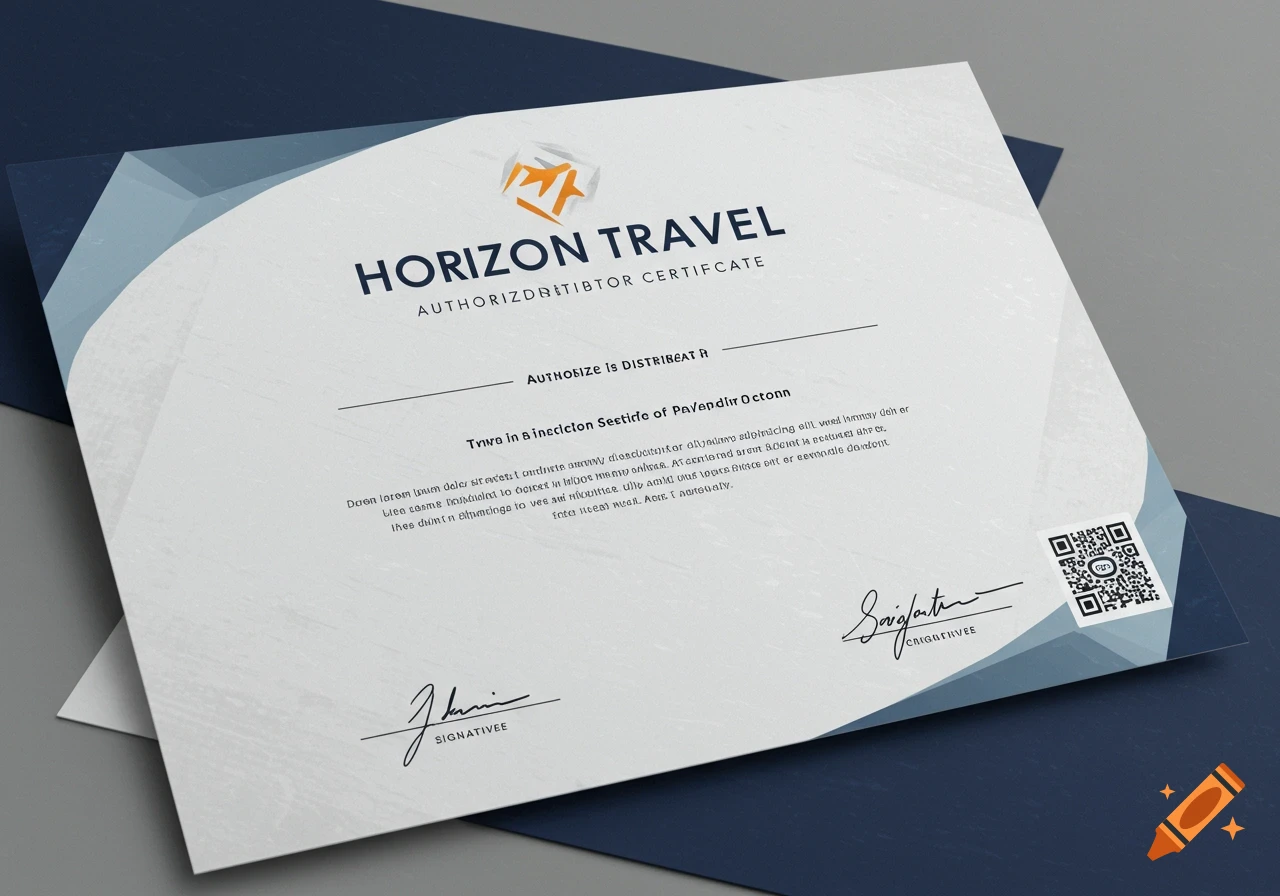 Fake Authorized Distributor Certificate for Horizon Travel on Craiyon