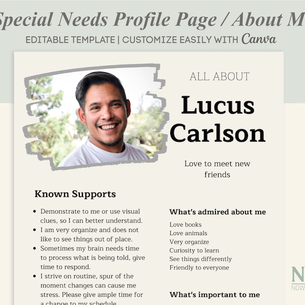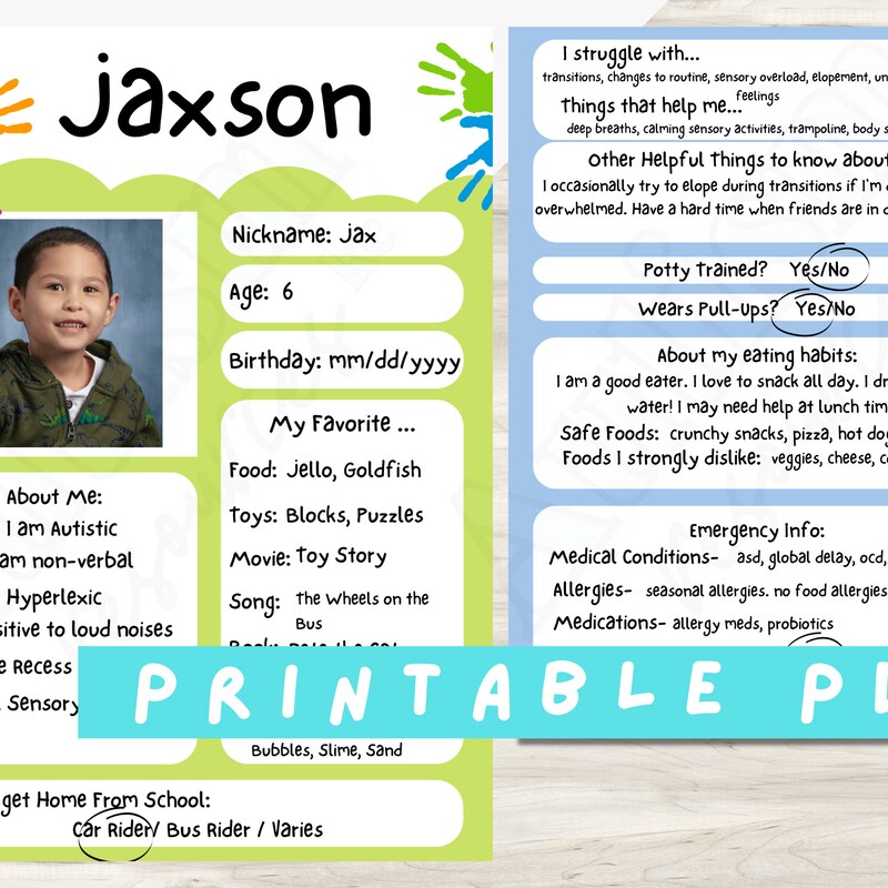 Autism All About Me Template