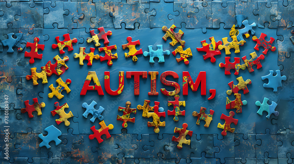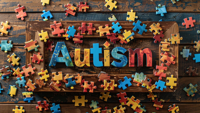 World Autism Awareness Day Concept Word Autism and Colorful Puzzle