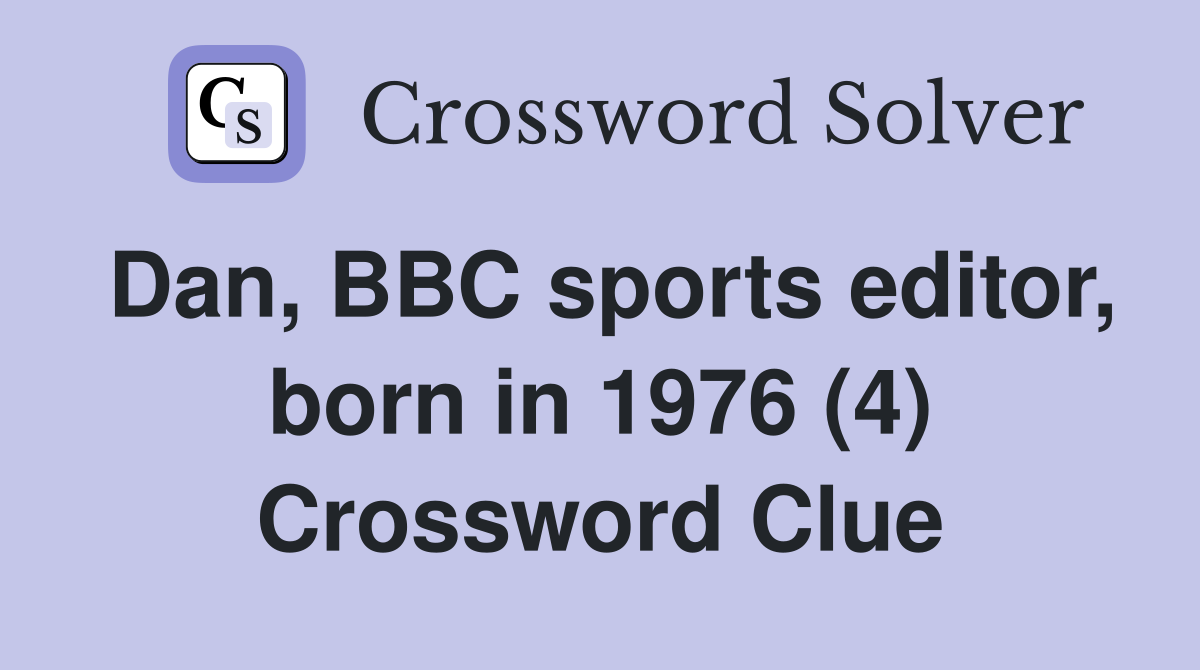 Dan BBC sports editor born in 1976 (4) Crossword Clue Answers