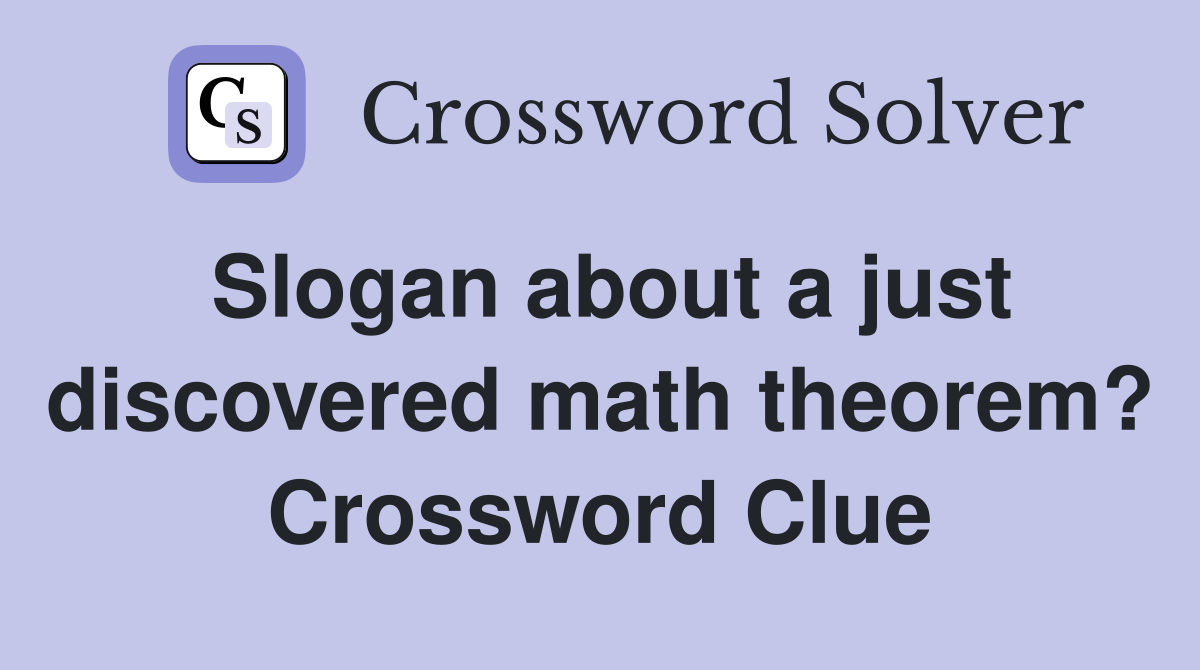Slogan about a just discovered math theorem? Crossword Clue Answers