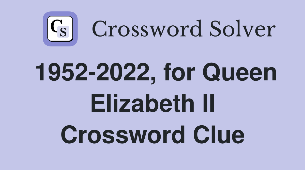 1952 2022 for Queen Elizabeth II Crossword Clue Answers Crossword