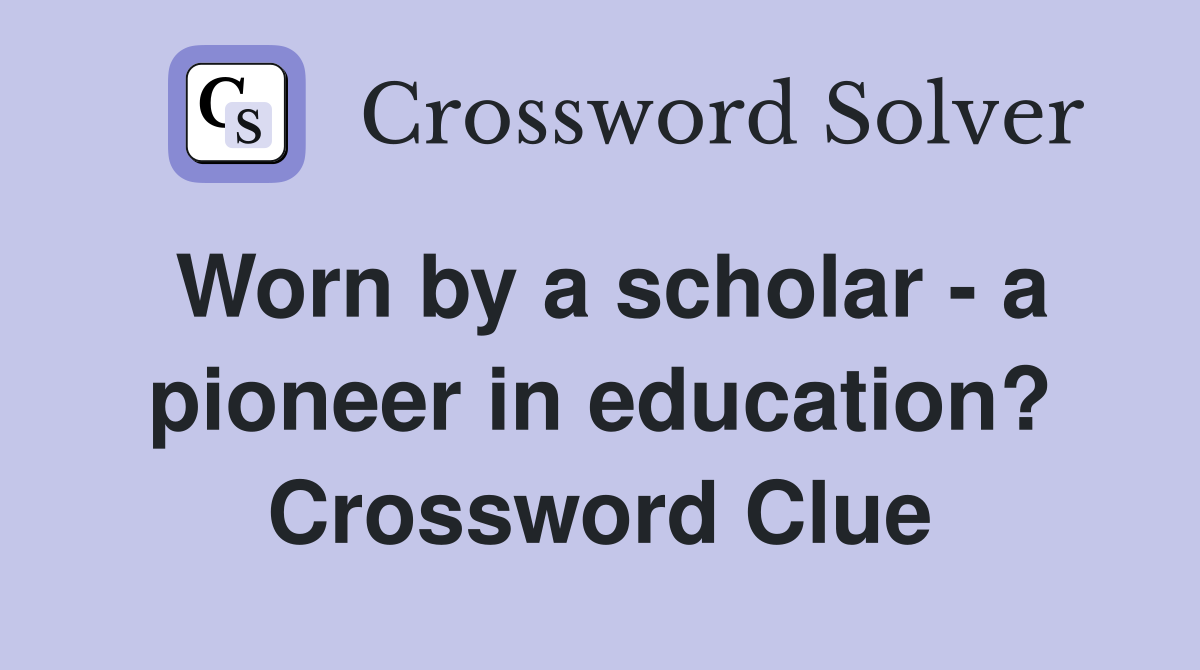 Worn by a scholar a pioneer in education? Crossword Clue Answers