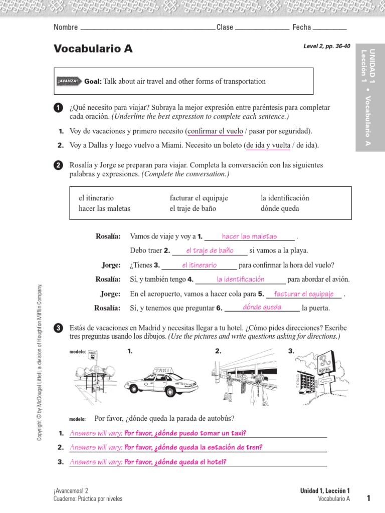 Avancemos 1 Textbook Answers Avancemos Workbook Cuaderno Niv