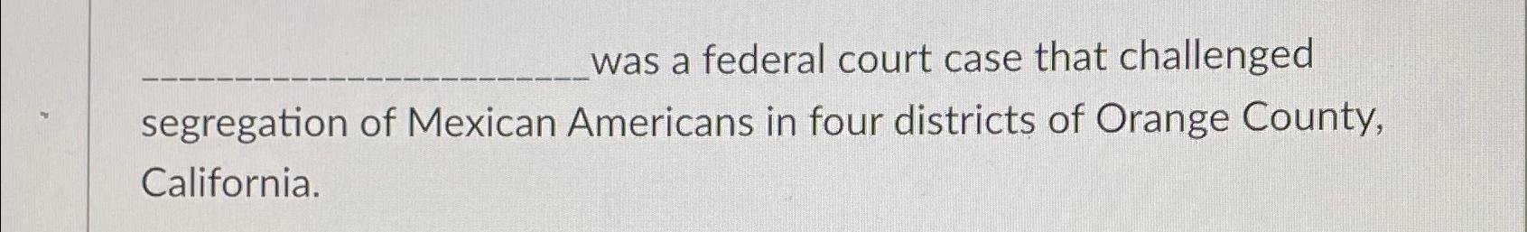 Solved was a federal court case that challenged segregation Chegg com