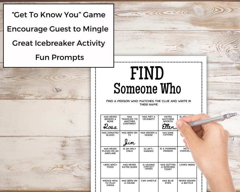 Find Someone Who Game Get to Know You Office Games Ice Breaker Games