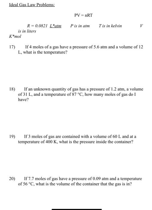 SOLUTION: Ideal gass law worksheet Studypool Worksheets Library