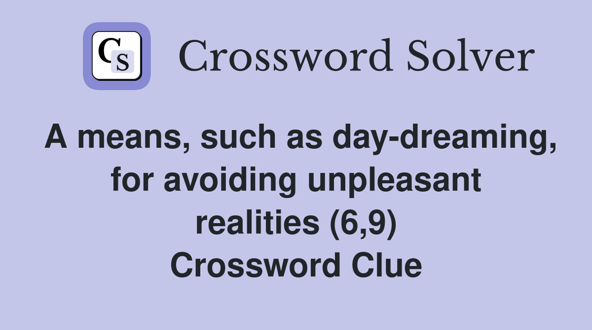 A means such as day dreaming for avoiding unpleasant realities (6 9