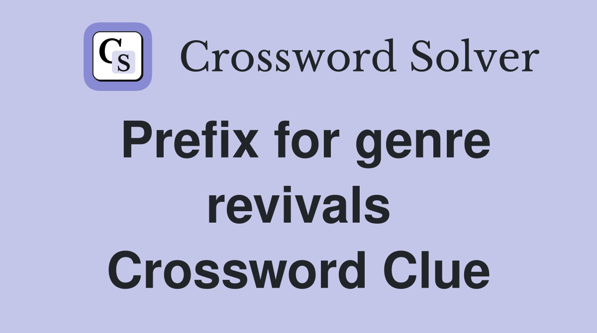 Prefix for genre revivals Crossword Clue Answers Crossword Solver