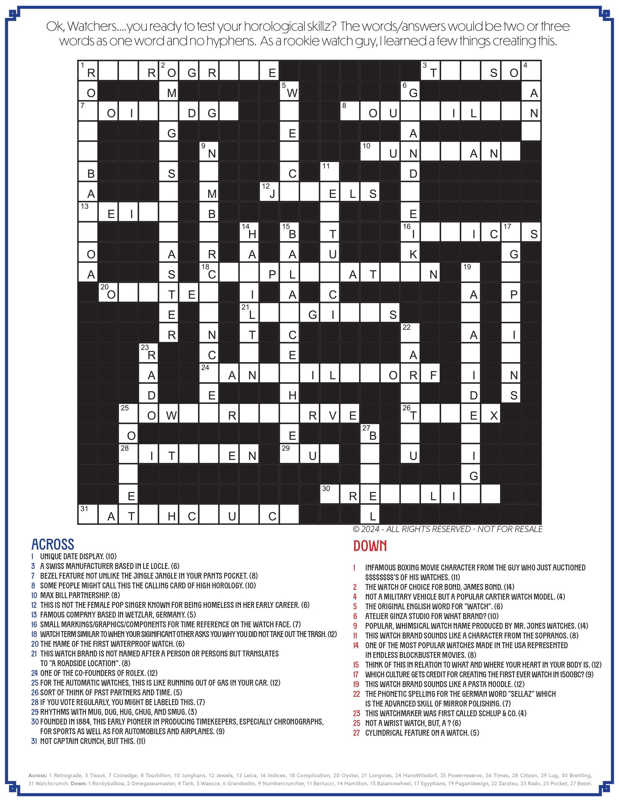 Crossword Puzzle for Horology (the fun version) WatchCrunch