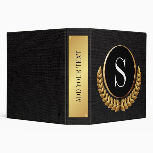 Elegant black gold monogrammed modern script name 3 ring binder Zazzle