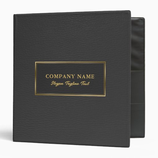 Elegant Black Leather Texture Gold Text Frame 3 Ring Binder Zazzle