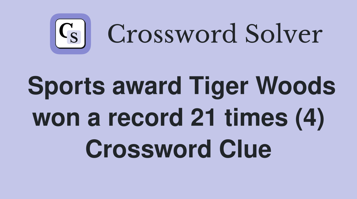 Sports award Tiger Woods won a record 21 times (4) Crossword Clue