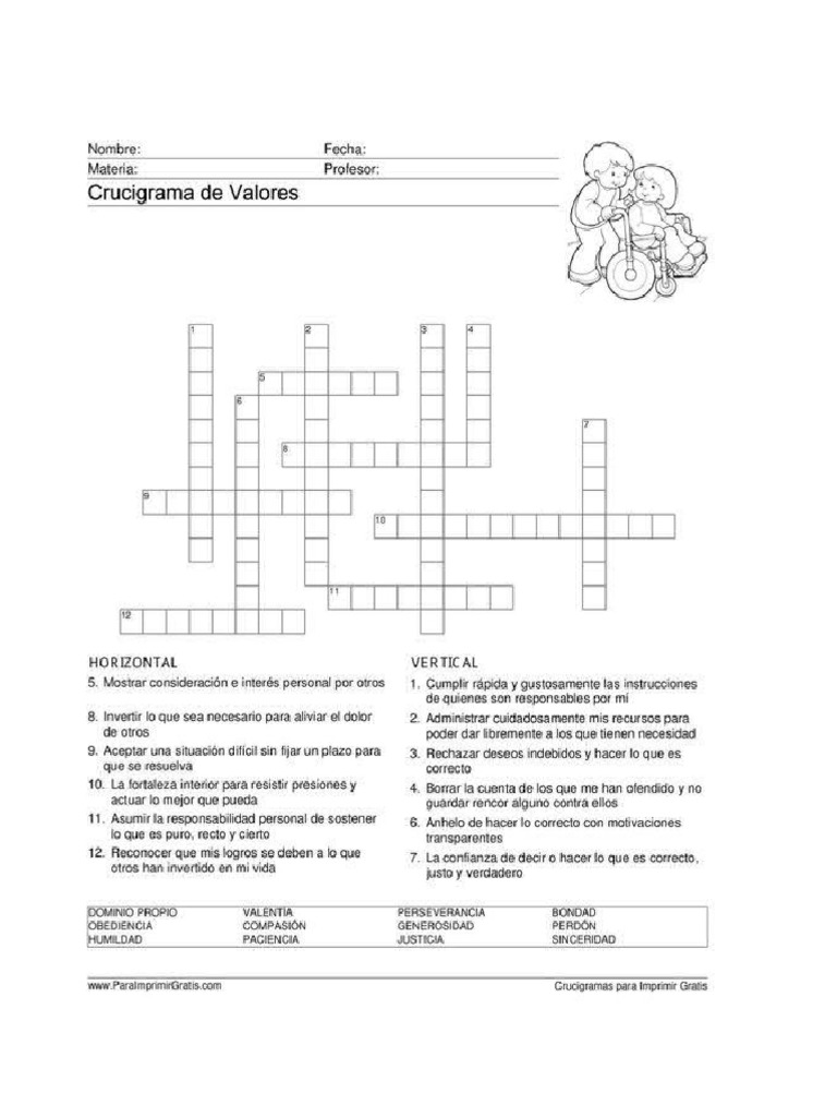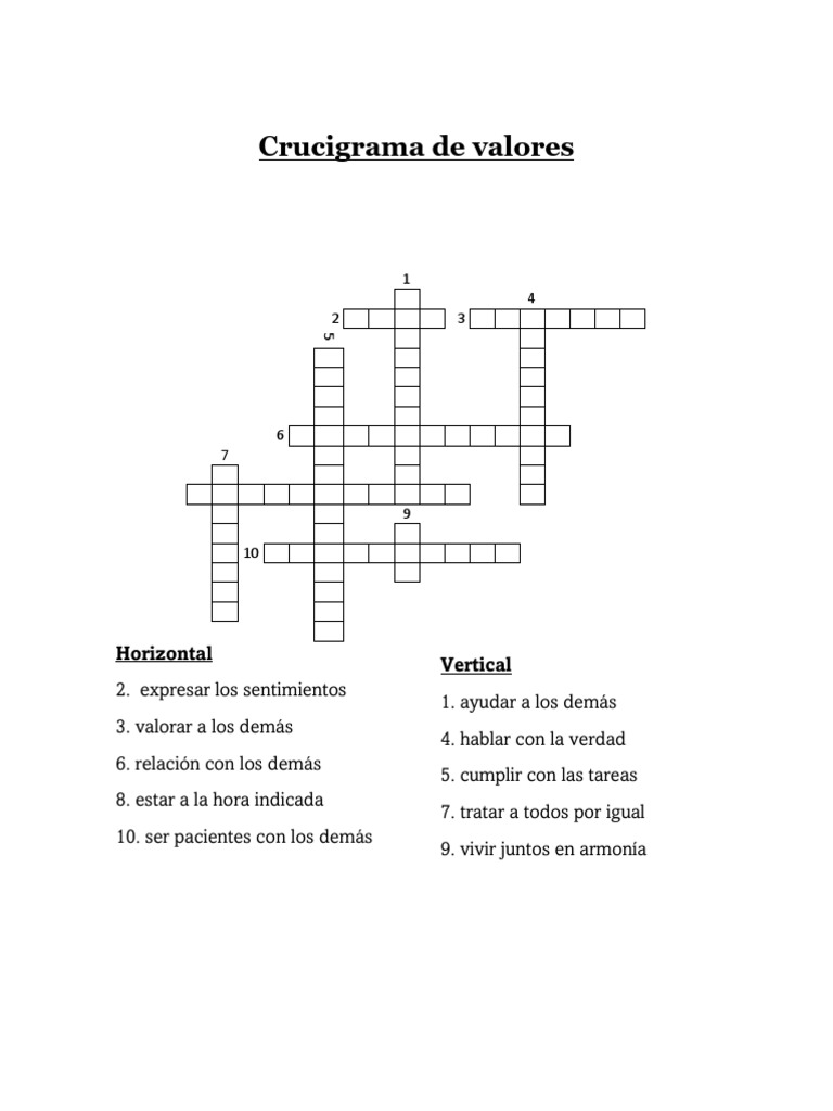 CRUCIGRAMA TABLERO DE VALOR POSICIONAL Crossword