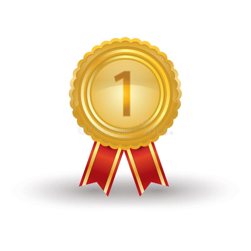 Number 1 Winner Ribbon Award Badge Gold Medal Stock Illustration