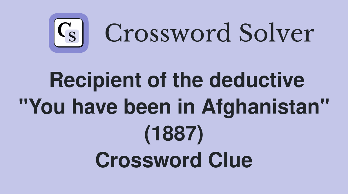 Recipient of the deductive quot You have been in Afghanistan quot (1887