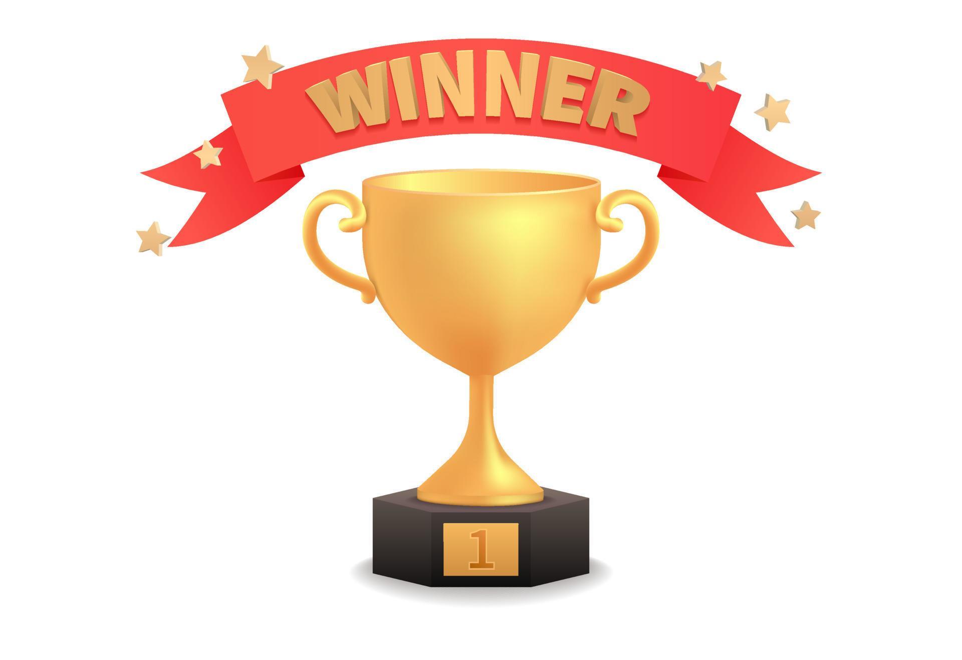Golden cup 3d red ribbon winner 1st place minimal gold winners stars