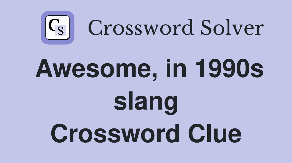Awesome in 1990s slang Crossword Clue Answers Crossword Solver