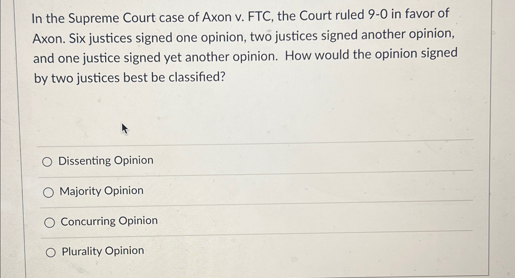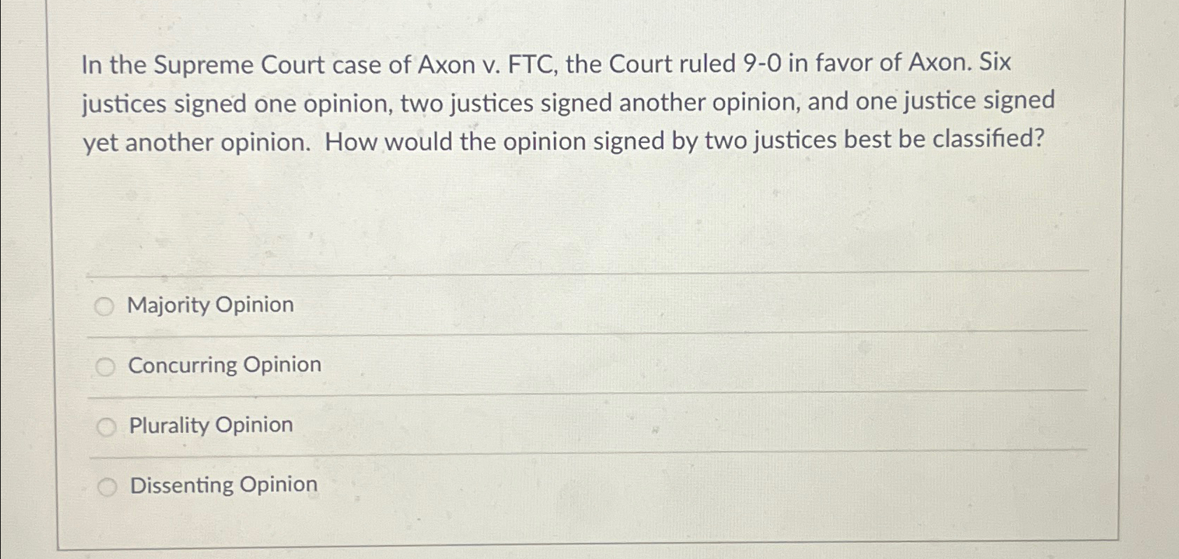 Solved In the Supreme Court case of Axon v FTC the Court Chegg com
