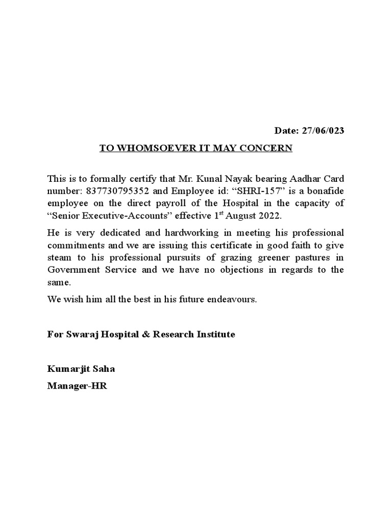 Employment Certificate