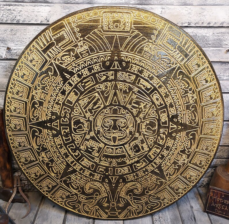 Large Wooden Mayan Calendar Golden Aztec Calendar Ancient Mayan Decor