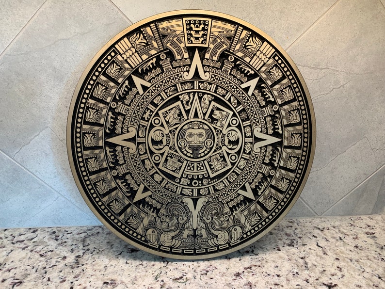 Wood Carved Aztec Calendar Wall Art High Detail Aztec Wood Etsy