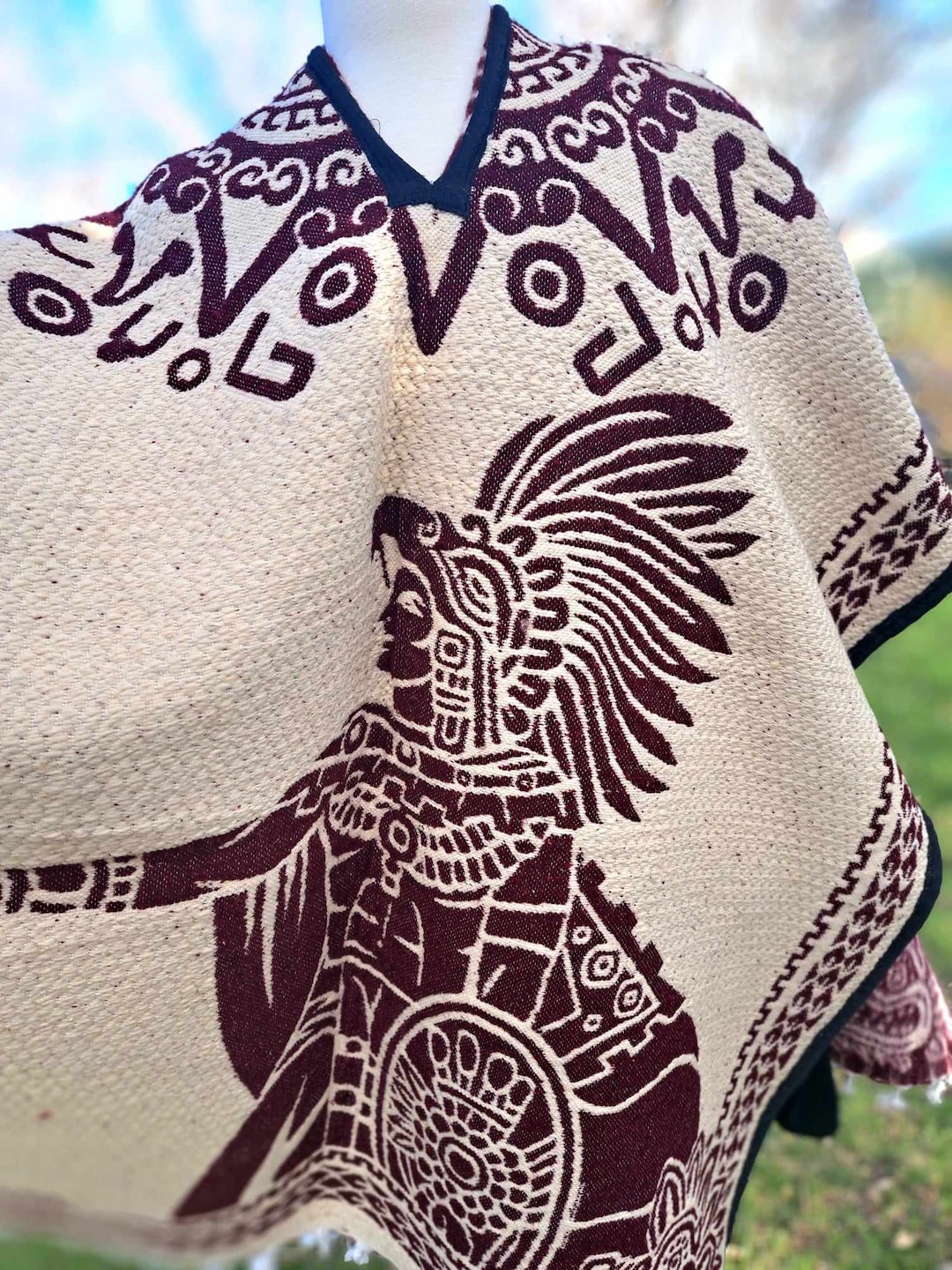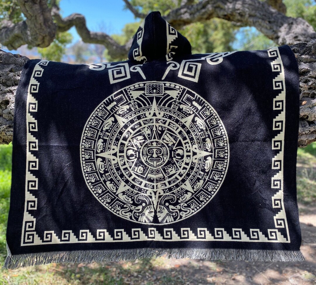 Aztec Calendar Mexican Poncho Etsy