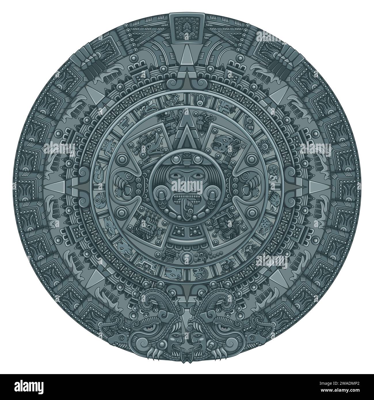 Vector design of Aztec calendar monolithic disk of the ancient Mexica