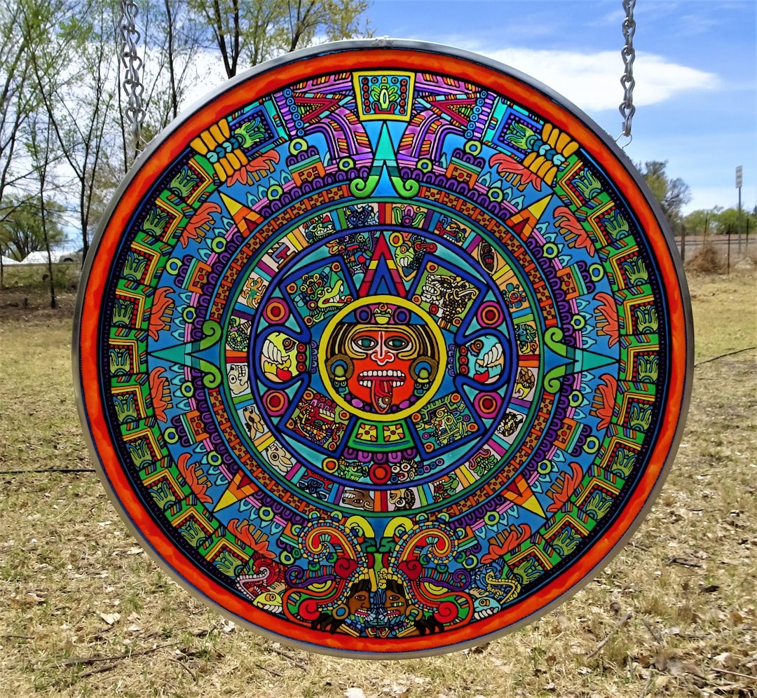 Aztec Sun Stone/aztec Calendar 21 Inch Diameter FAUX Stained Glass on
