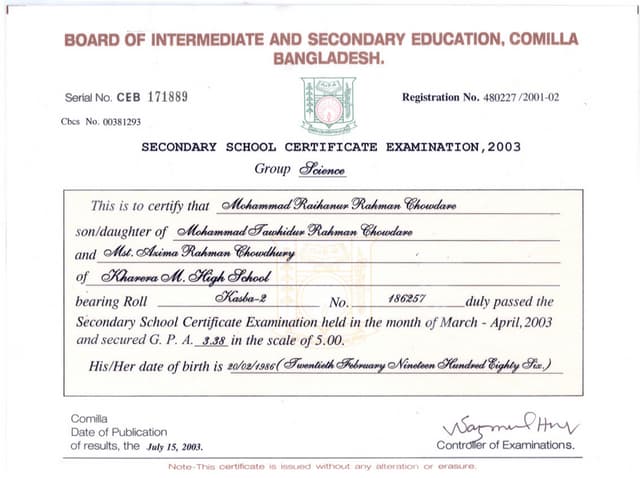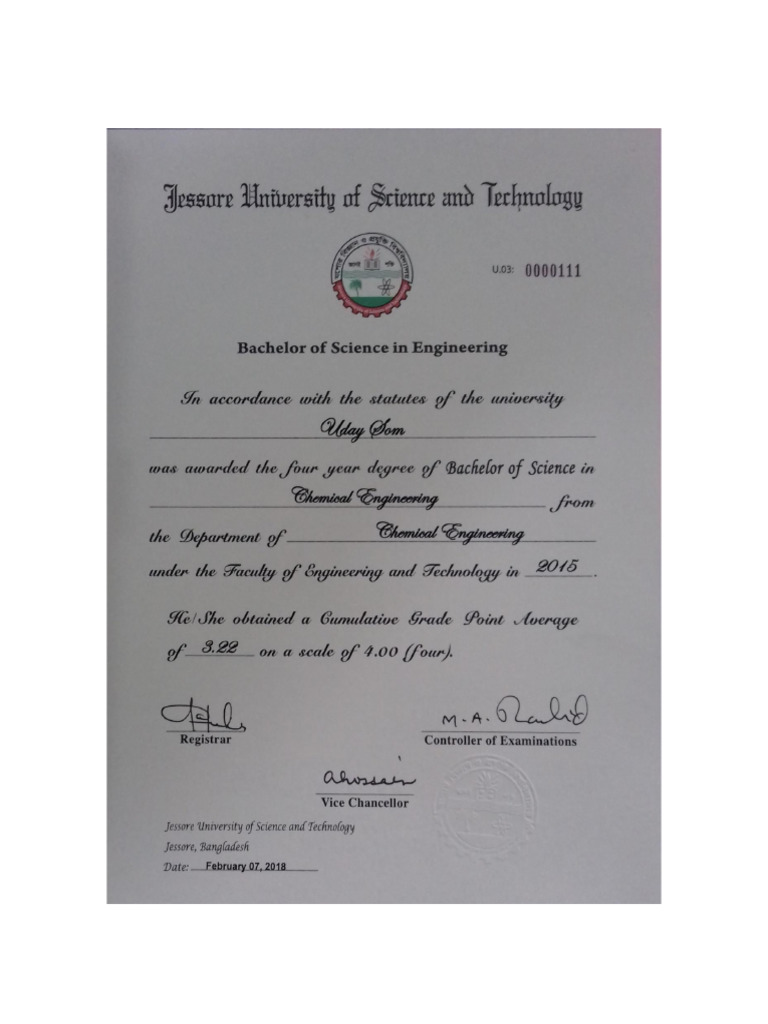 Convocation Certificate B Sc