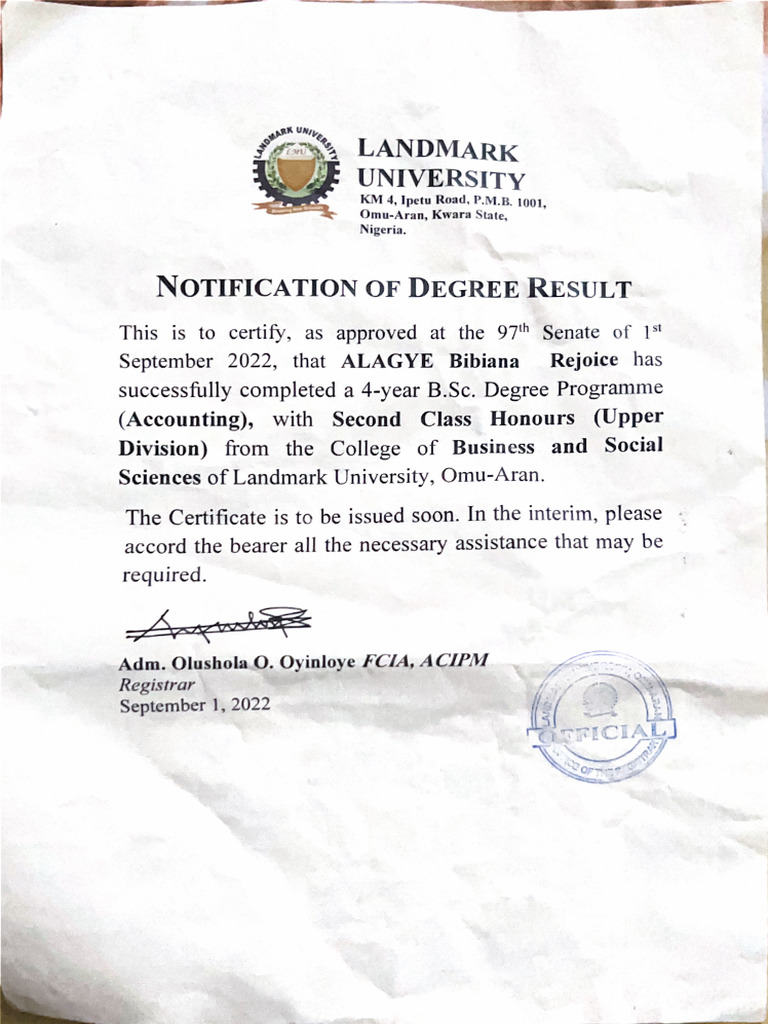 Kudirat Lawal B SC Certificate PDF