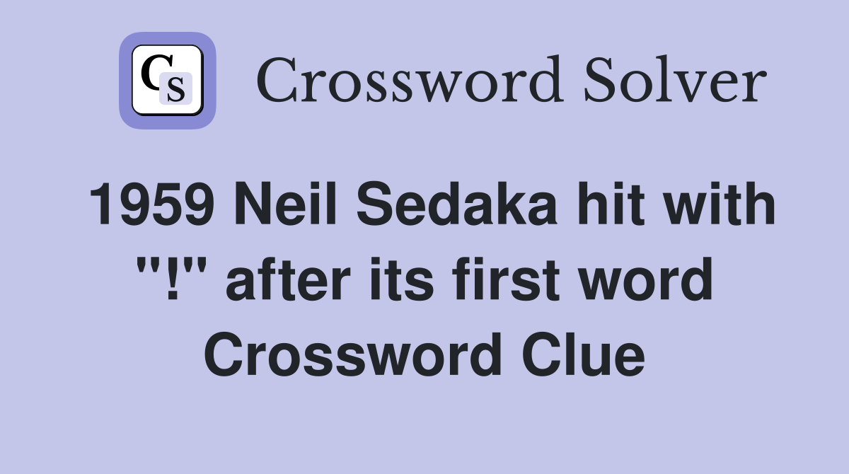 1959 Neil Sedaka hit with quot quot after its first word Crossword Clue