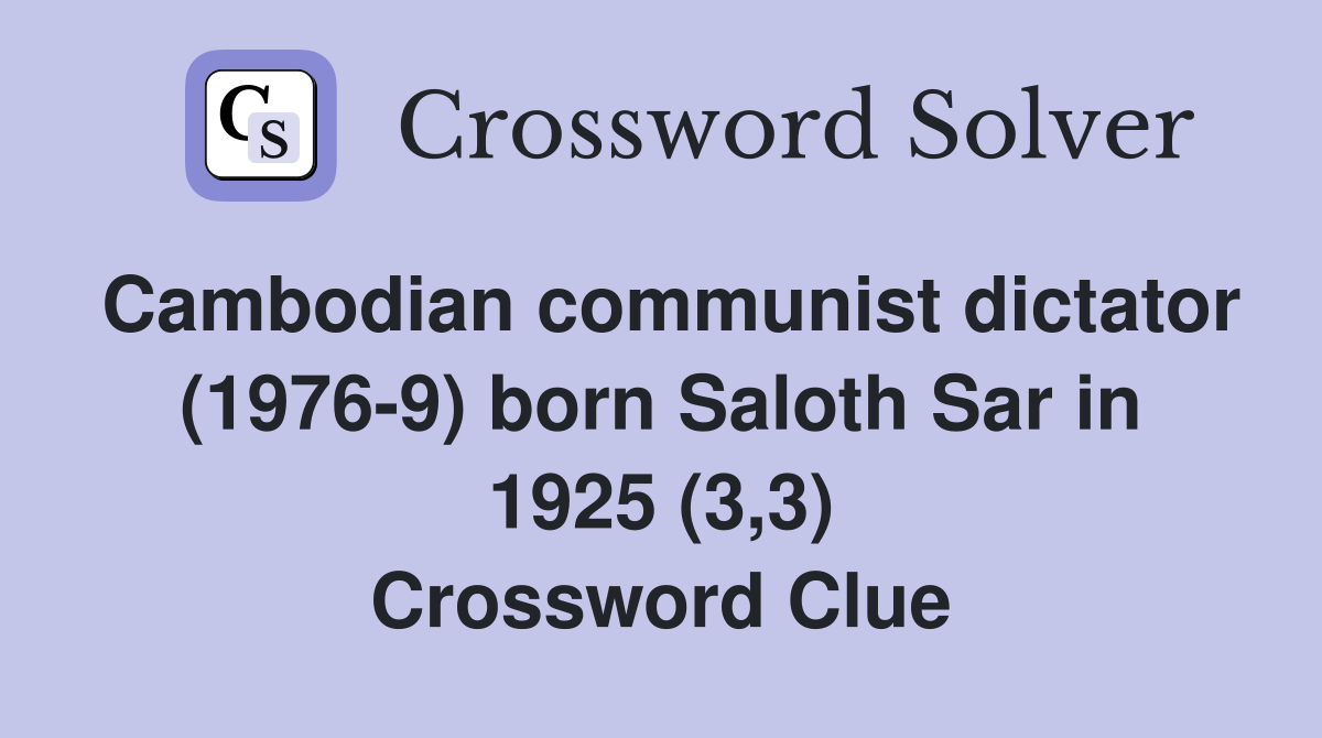 Cambodian communist dictator (1976 9) born Saloth Sar in 1925 (3 3