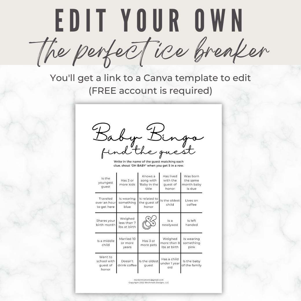 Printable Baby Shower Bingo Birchmark Designs