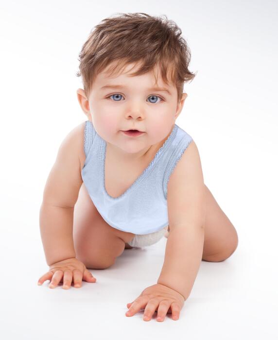 Portrait Of Crawling Baby Boy Looking Up Newborn Human Boy Childhood